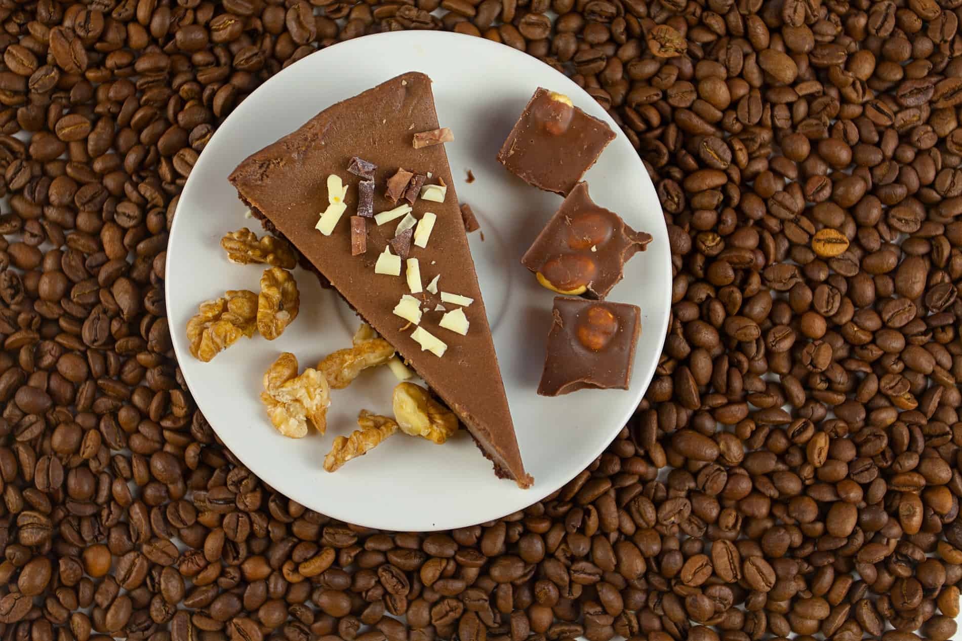 Příprava polevy také není náročná. Smetanu nalijeme do malého hrnce, přidáme kávu a kardamom a mícháme až do varu. Poté odstavíme z ohně, přidáme máslo a bílou čokoládu nalámanou na kostičky, promícháme a rozpustíme do hladka. Nalijte na upečené dno a počkejte, až zhoustne.