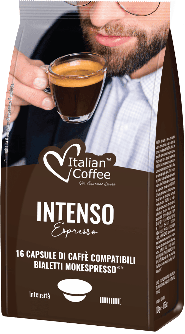Italian Coffee Intenso – Měla by být malá černá káva silná pro vás? Pokud ano, určitě vám bude chutnat Intenso. Tato káva vás rychle postaví na nohy a dodá vám energii. S kapslemi kompatibilními se systémem Bialetti Caffe D’Italia® můžete velmi rychle a snadno připravit aromatické a intenzivní espresso. Kapsle kompatibilní se systémem Bialetti Caffe D’Italia® obsahují velmi kvalitní zrna Arabica a Robusta. Díky této kombinaci je káva na jedné straně velmi intenzivní a na druhé straně není ani příliš hořká, ani příliš kyselá. Vysoký obsah Robusty znamená, že Intenso obsahuje dostatek kofeinu, abyste se ráno nastartovali.