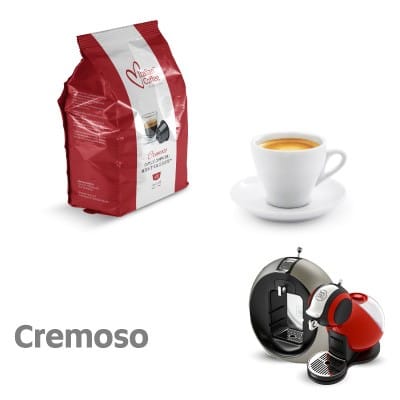 Cremoso je, jak název napovídá, extrémně krémová káva. Má velmi jemnou chuť a intenzivní aroma. Jeho pití by se mělo stát vaším každodenním potěšením. Kompatibilní kapsle Dolce Gusto vám umožní připravit si tento jedinečný nápoj sami v pohodlí vašeho domova. Tato káva je ideální volbou pro všechny, kteří mají rádi jemné a jemné chutě. Může být perfektním doplňkem k snídani. Kapsle kompatibilní se systémem Dolce Gusto® lze použít k přípravě až 16 šálků kávy Cremoso.