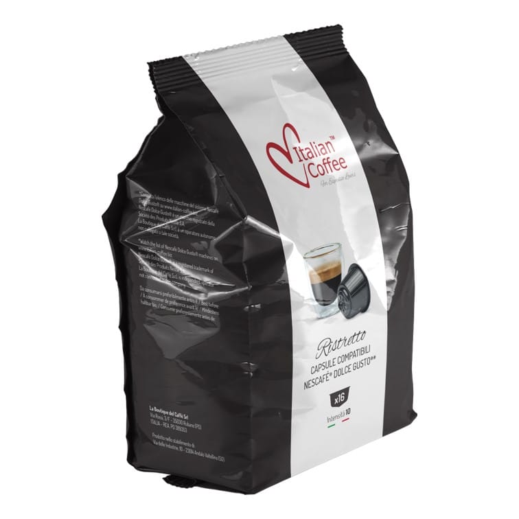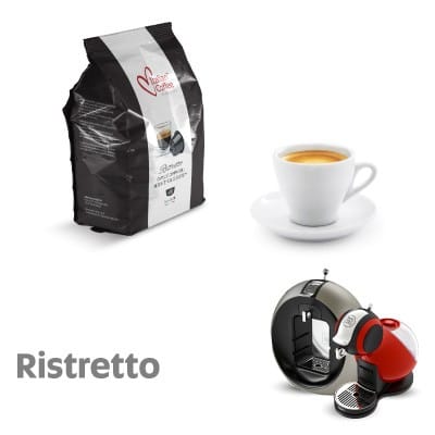Ristretto je silná, výrazná a plná káva. Obsahuje 100% Robustu, takže se můžete spolehnout, že vám dodá spoustu energie. Ristretto je káva pro opravdové fajnšmekry. Pokud máte rádi výzvy a zkoušení nových chutí, nemůžete to lhostejně přejít. Je to vlastně espresso, které se louhne kratší dobu a v menším množství vody. Kávu můžete 100% ochutnat. S kapslemi kompatibilními se systémem Dolce Gusto® si můžete tento tradiční italský nápoj vychutnat u sebe doma.