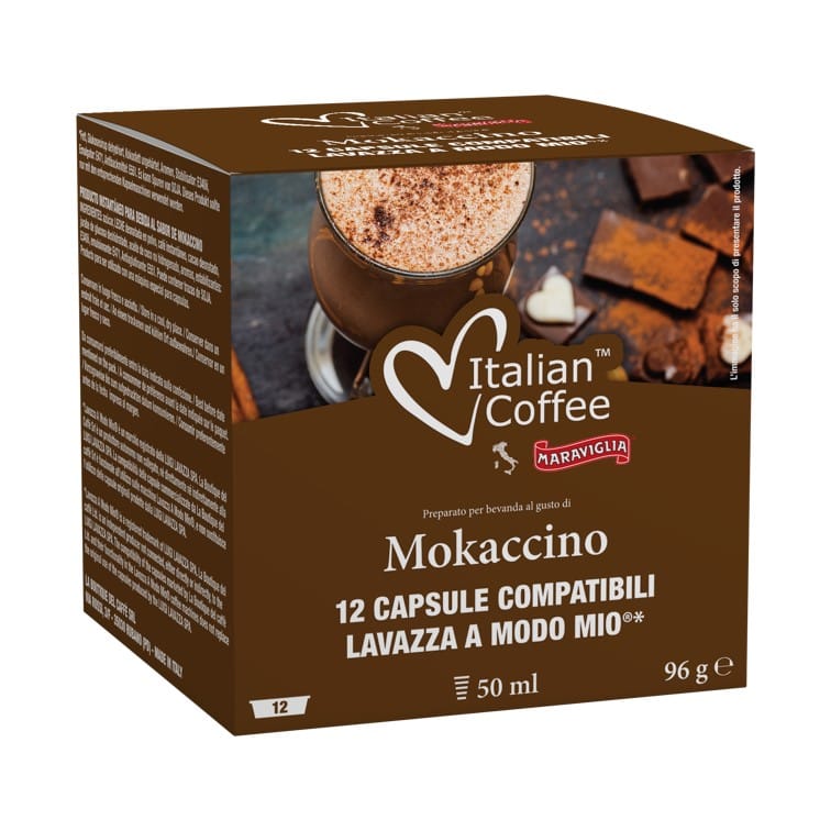 Mokaccino je dokonalá kombinace kávy, kakaa a mléka. Chuť připomíná trochu čokoládové latte, což jistě potěší všechny, kteří milují čokoládu a klasickou italskou kávu s mlékem. Díky tomu, že je v nápoji mléko, je káva mimořádně jemná v chuti a krémová. Mokaccino je dezert v šálku, který uspokojí i ty nejnáročnější jazýčky. Kapsle Lavazza a Modo Mio dostupné v našem obchodě jsou pevně zabaleny, aby byla kávová zrna stejně aromatická jako na samém začátku.
