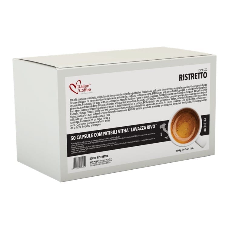Kávové kapsle Ristretto se vyznačují silnou chutí vytvořenou pro znalce, kteří milují redukované, tmavé espresso s hustou konzistencí. Obsahuje nejkvalitnější zrna Robusty z nejlepších kávových plantáží v Ugandě a Indii. Po uvaření získáme pravou italskou krátkou kávu s intenzivní chutí a extrémně krémovou texturou. Předpokládá se, že ristretto má méně hořkou chuť než espresso a obsahuje méně kofeinu, i když stále dává příslovečné „nakopnutí“.